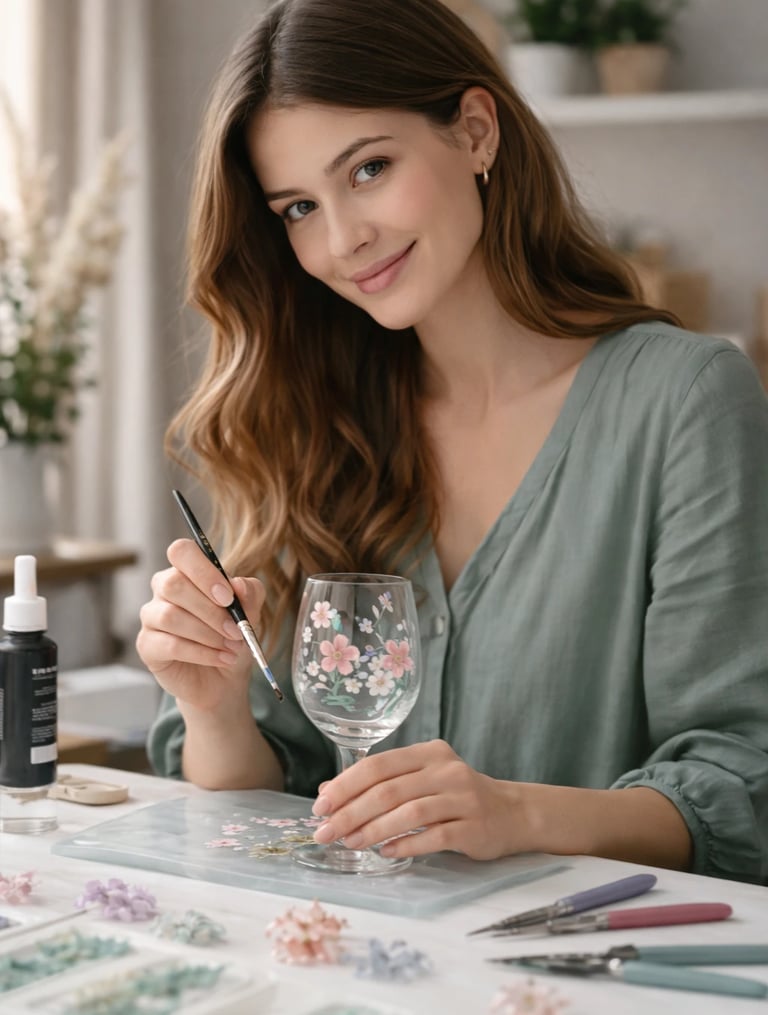 Lucía Monteverde, especializada en pintura en vidrio y decoración artesanal, este método fue desarrollado a partir de la experiencia práctica con copas, vasos y superficies de vidrio utilizadas tanto para uso decorativo como comercial.
